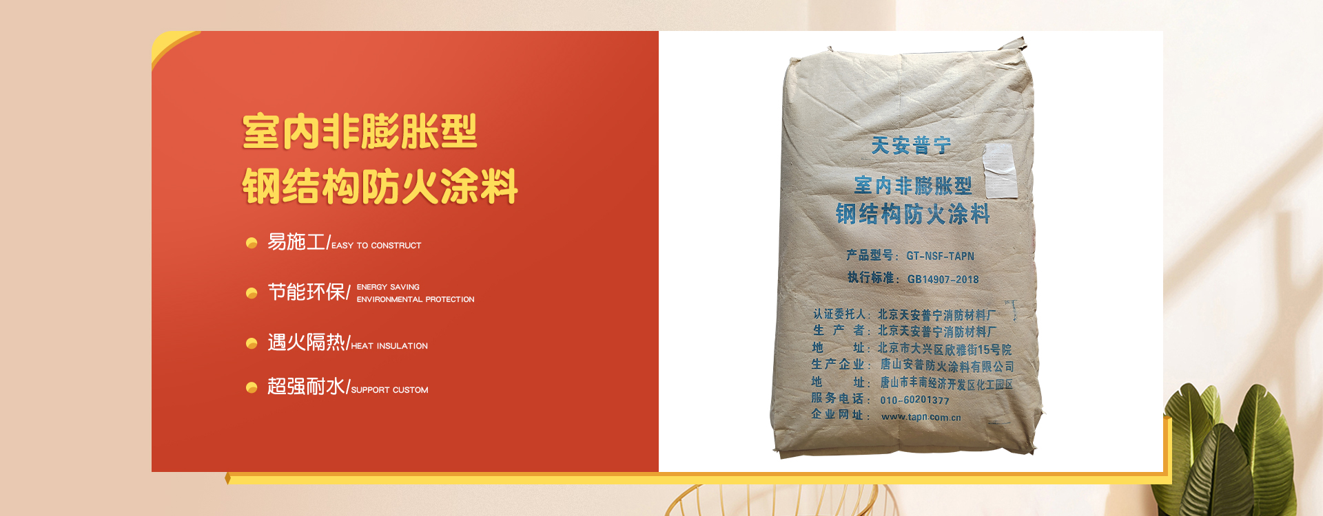 北京天安普寧消防材料廠是一家從事防火涂料二十多年生產企業,企業集研制開發(fā)、生產銷售及各類防火涂料施工為一體。 企業員工總數100人,其中管理人員20人,科研人員10人,銷售50人,其他員工十多人。企業生產用地面積2000平方米左右,辦公用地面積1000平方米。擁有先進的生產設備20多臺,年生產量10000余噸。 企業擁有一支高學歷、資歷深的研發(fā)隊伍,以科學的管理,先進成套的生產流水線設備及完善的產品質量檢驗措施,開發(fā)出TAPN系列防火涂料產品,可以滿足于各類建筑工程中不同基材、不同技術要求的防火保護,天安普寧系列防火涂料全部經過《國家消防及阻燃產品質量監(jiān)督檢驗中心》檢驗,理化性能合格,防火性能高,通過《應急管理部消防產品合格評定中心》認證并獲得《消防身份信息標識》。 企業結合多年的工程施工實踐經驗,培養了一支專業有素、經驗豐富、高質量、效率高的防火涂料施工隊伍,可承攬各類高層、多層、大跨度廠房及網架鋼結構防火涂料噴涂施工服務。 企業始終為用戶全心全意服務,不斷滿足各建設單位的要求,共同為我國的建筑消防事業作出更大的貢獻,衷心感謝新老客戶的支持,全體員工熱情歡迎廣大用戶的光臨惠顧。